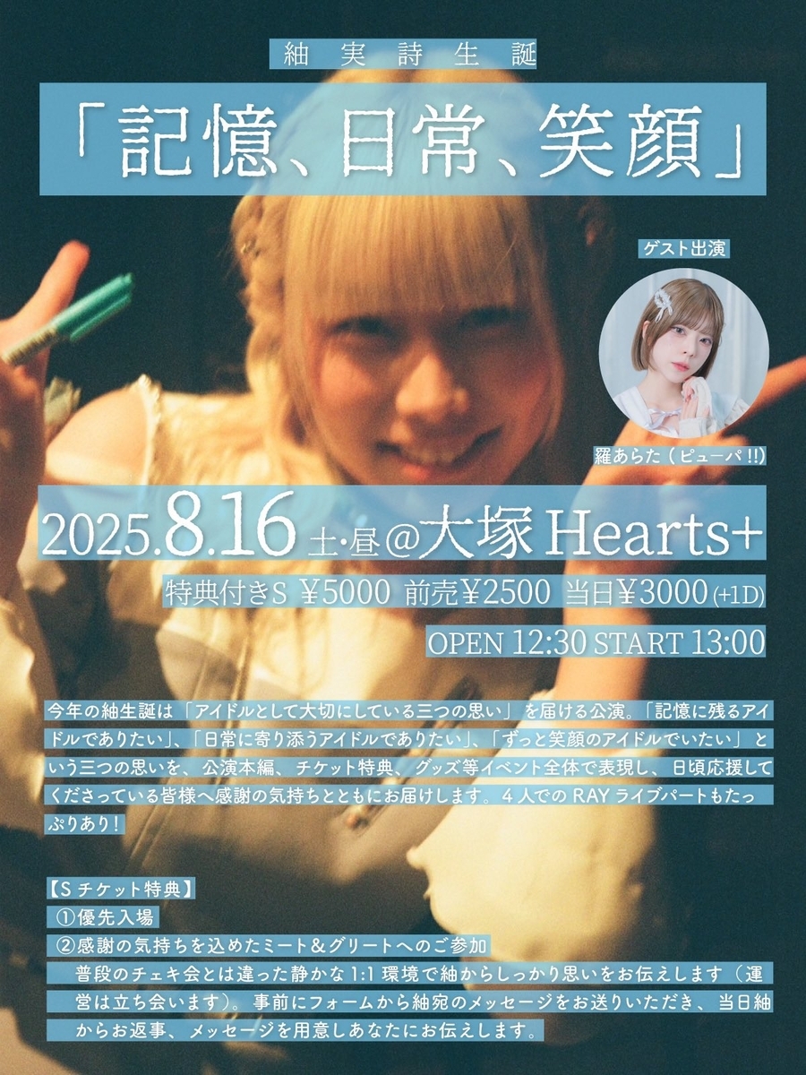 何かといえば、RAYのメンバーであるみこちこと紬美詩さんの生誕だ。